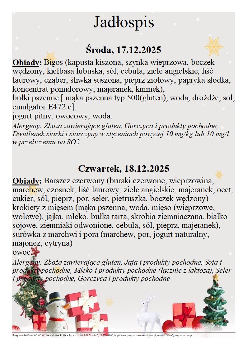 Jadłospis 17-18.12.2025