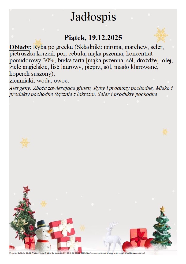 Jadłospis 19.12.2025