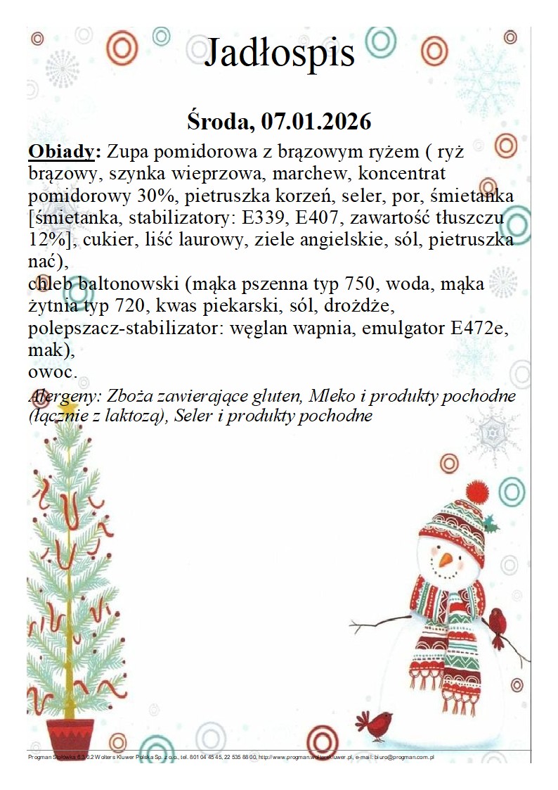 Jadłospis 07.01.2026