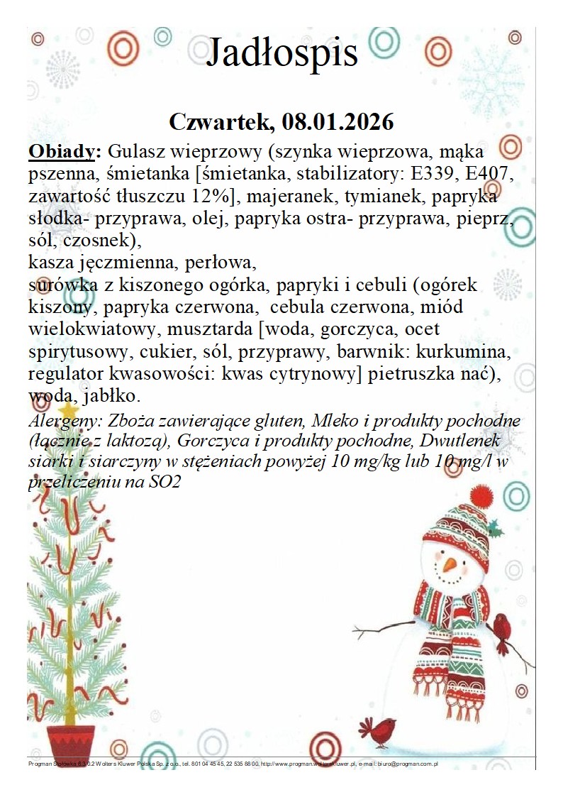 Jadłospis 08.01.2026