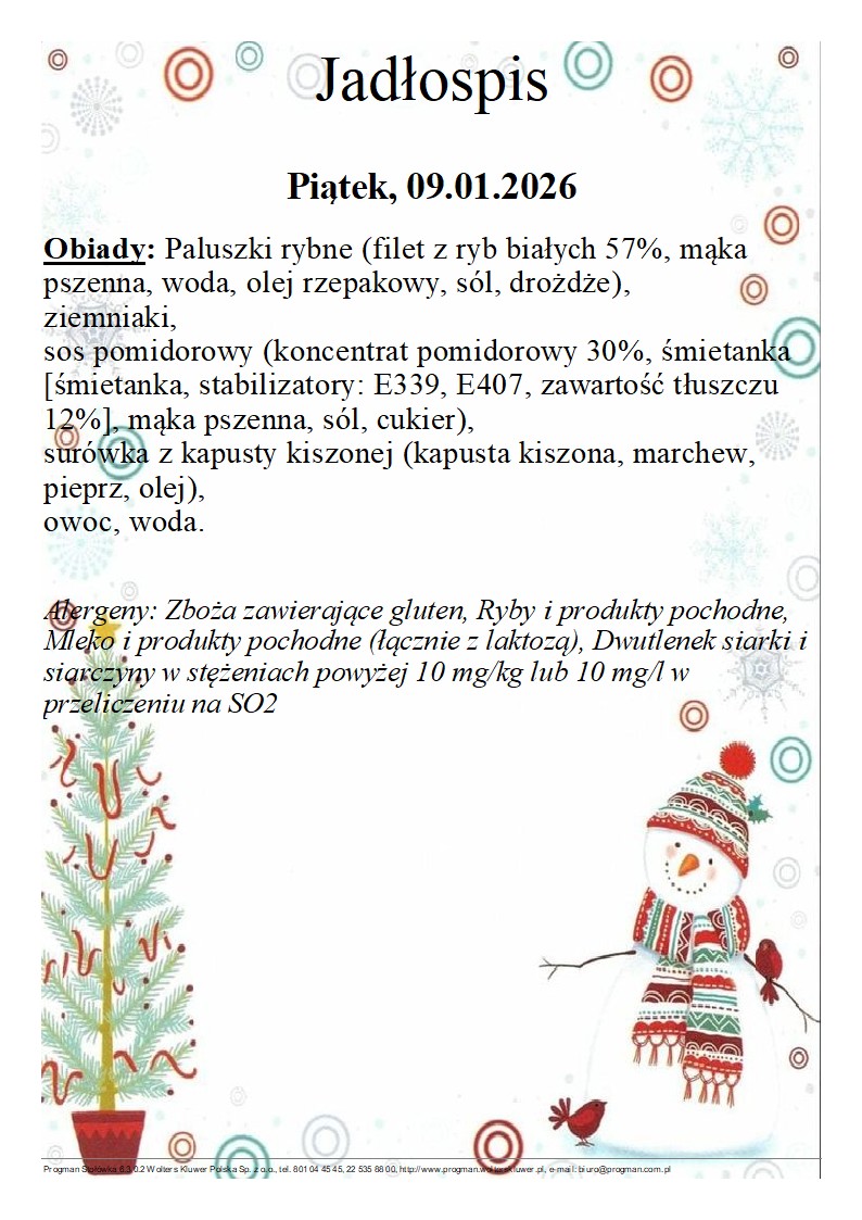 Jadłospis 09.01.2026